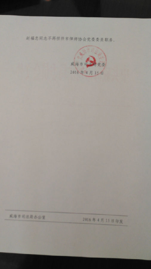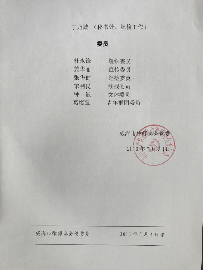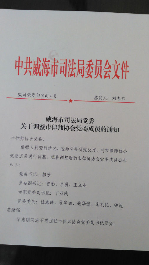 威海市司法局党委关于调整市律师协会党委成员的通知