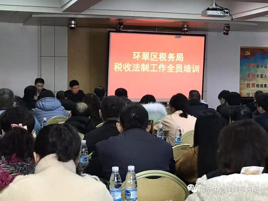 2019年2月21日,山东弘誉律师事务所主任国辉律师应邀作为主讲人参与威海市环翠区税务局在威海天外天酒店开展的“税收法制工作全员培训”活动。