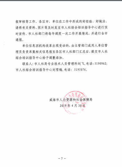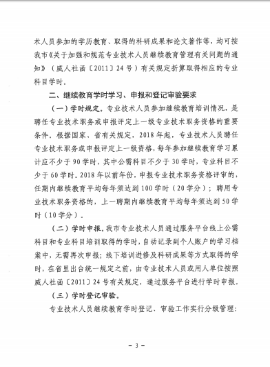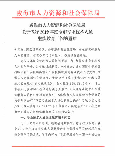 转 威海市人力资源和社会保障局关于做好2019年度全市专业技术人员继续教育工作的通知