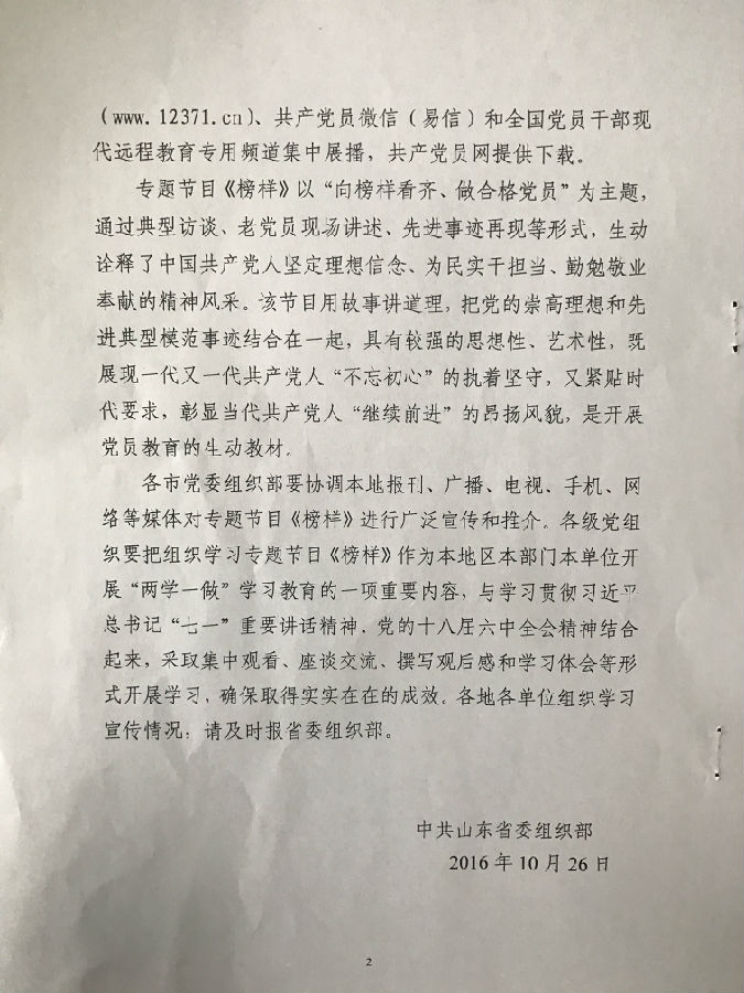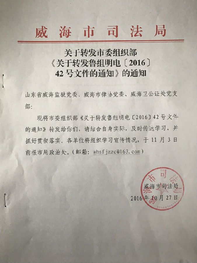 威海市司法局转发了市组织部、省组织部关于认真做好专题节目《榜样》学习宣传工作的通知,威海律师协会党委要求所属党支部要按照市局通知精神,采取分散学习与集中学习相结合的方式,及时组织全体党员认真贯彻学习市组织部、省组织部关于认真做好专题节目《榜样》学习宣传工作的通知,要求广大党员在不同场所、采用不同方式按时收看中央电视台综合频道和中央电视台新闻频道播出的《榜样》专题节目,各律师所党支部下载《榜样》专题节目,利用休息时间组织全体党员集中观看,召开座谈会、相互交流,撰写观后感和学习体会,各律师所党支部组织学习宣传情况,及时报市律师协会党委。